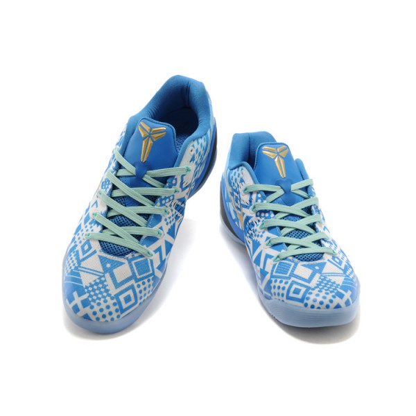 Alors que nous attendons patiemment les premières images de la prochaine Kobe 10 silhouette, Nike Basketball pousse les derniers coloris de ce modèle l'année Kobe 9 EM. Doté d'un graphisme imprimé bleu et blanc à travers le supérieur, c'est l'un des coloris hors concours Kobe 9 EM jusqu'à présent, et l'ajout de lacets verts de Pâques et de la marque Swoosh d'or ajoute un beau compliment.